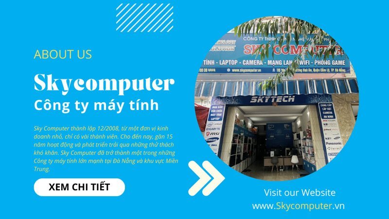 Sky Computer (Công ty TNHH Công nghệ Và Giải Pháp Sky) đã hoạt động hơn 15 năm, công ty đã trở thành một trong những công ty máy tính lớn mạnh tại Đà Nẵng. Với đội ngũ hơn 50 nhân viên, công ty luôn chú trọng đến việc đào tạo và nâng cao kỹ năng, nhằm mang lại chất lượng dịch vụ tốt nhất cho khách hàng.